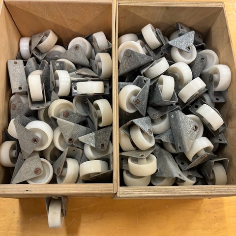 En kasse med helt nye hjul med låsefunktion - Samlet pris kun 200 ekskl. moms.