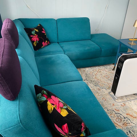Sofaen kan deles i to dele for transport.