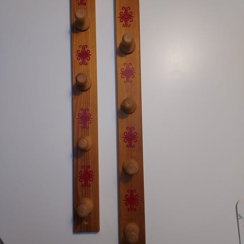 Gamle små fyrretræs knagerækker