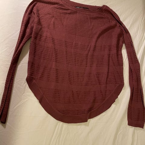 Sød oversize bluse med O-hals, sænkede skuldre og 3/4 ærme. Løs og rummelig pasform med et brystmål på 112cm, så passes også af fint af str S.