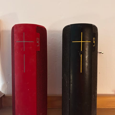 UE megaBoom Bluetooth-højttaler i sort. God og kraftig lyd i forhold til størrelsen. Forbundet og opdateret via UE-app. Kosmetiske brugsspor på overfladen, men ingen tekniske fejl. Perfekt som højttaler on the go eller til udendørs brug. Spiller ganske højt.