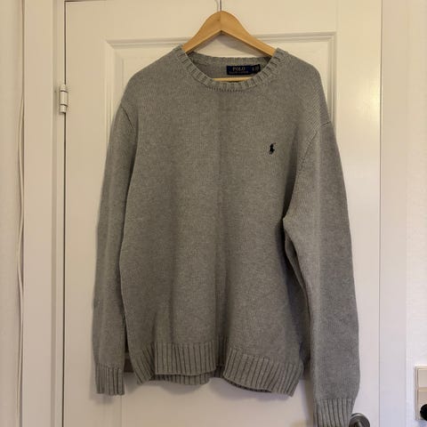 Ralph Lauren striktrøje til mænd i størrelse S. Trøjen er blå og lavet af nylon, wool og acrylic. Den har et klassisk design med strukturstrik og rund hals.