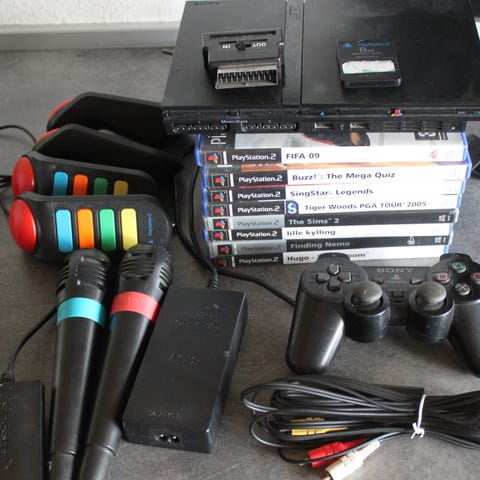 Playstation 2 slim silver med spil
