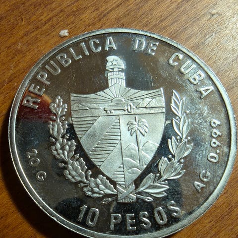 People's Democratic Republic 50 Kip sølvmønt fra 1995. Mønten er rund med en ridskant og består af 0,999 rent sølv. Den vejer 20 gram og markerer 100-års jubilæet for de Olympiske Lege.