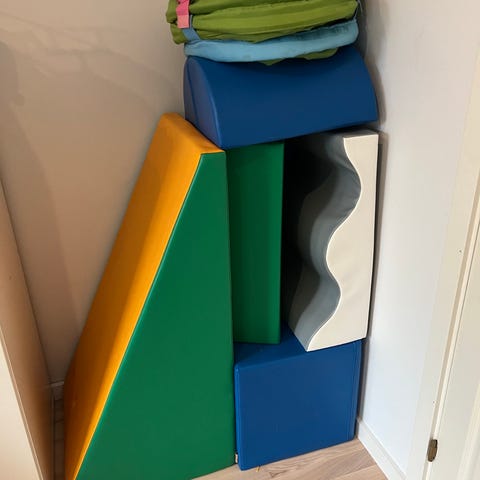 To funktioner i én: Sælger denne alsidige skumfigur i Gul og Rød. Den har en buet top og en flad bund, hvilket giver to geniale funktioner til motorikbanen: