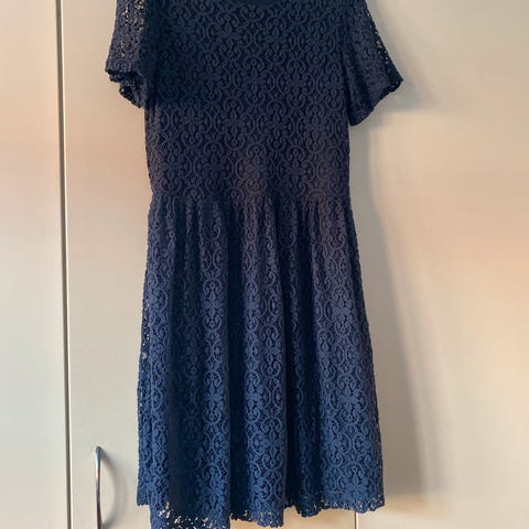 Skøn kjole i 100% viskose. Føles som bomuld. Aftageligt ruskindsbælte/snor. 3/4 lange ærmer med let elastik for enden (42 cm fra skuldren og 29 cm fra armhulen). 85 cm lang målt fra skulderen. 39 cm målt under brystet, hvor bæltet sidder. 45 cm fra armhule til armhule. Pæn stand.
