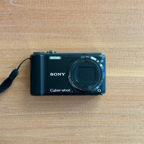 Sony digitalkamera i sølv sælges fra samling, med hele 20Mp og en skarp Zeiss Vario-Tessar linse.