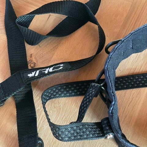 En meget fin børnesele til ski, med en fin clips/klemme/ holder til at holde skienes spidser sammen når de små skal lære at stå på ski.