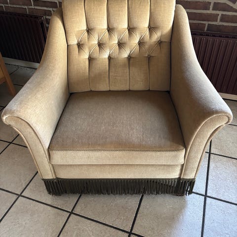 Retro sofastol - med flot betræk - med lidt slitage - god siddekomfort.