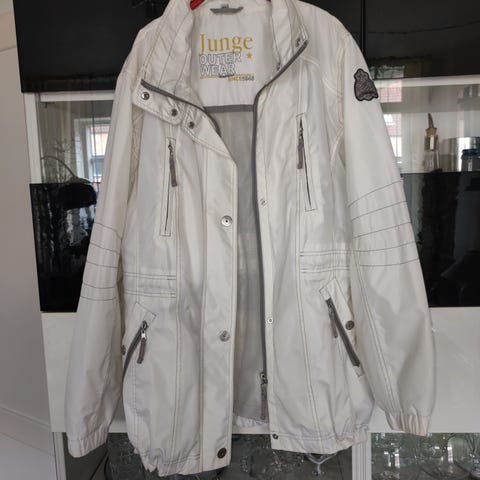 Den skønneste grå uld jakke til pige på 5-6-7 år. Der står 65 indeni, men ved ikke hvad mål det er. Den har virkelig flotte detaljer på kraven. Split i ryggen gør den så elegant.