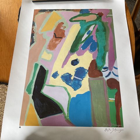 Linoleumstryk nr 4 ud af 6 fra 1989 af Dyke Johannsen (1933-2009), født i Tønder, død i Frankfurt. Anerkendt Kunstner. Se Weilbach Kunstnerleksikon. Standen er fin. Flot original tryk.