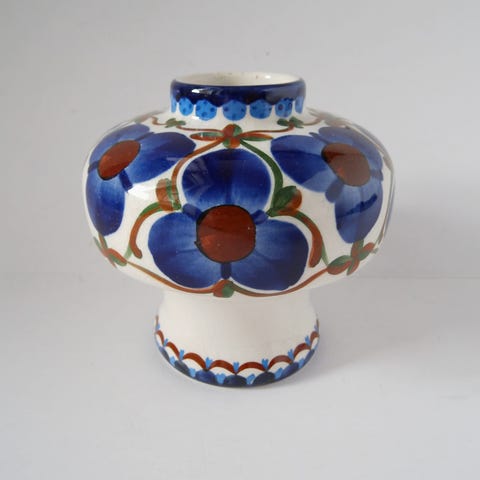 Aluminia 1304/345 vase med blå blomster og blommer 14 cm høj uden skår og afslag