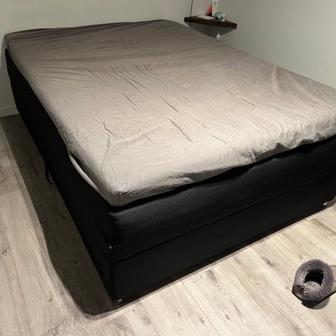 Sengeramme, bund, madras og topmadras samlet for 2.000,-