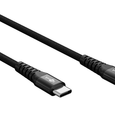 PRIS-MATCH! USB-C kabel stofbeklædt | Sort (60W, HighSpeed) | Fleksibelt USB C kabel med tekstil og metalstik, hurtig opladning op til 60 W og høj holdbarhed til moderne enheder inklusive iPhone 15 og MacBook.
