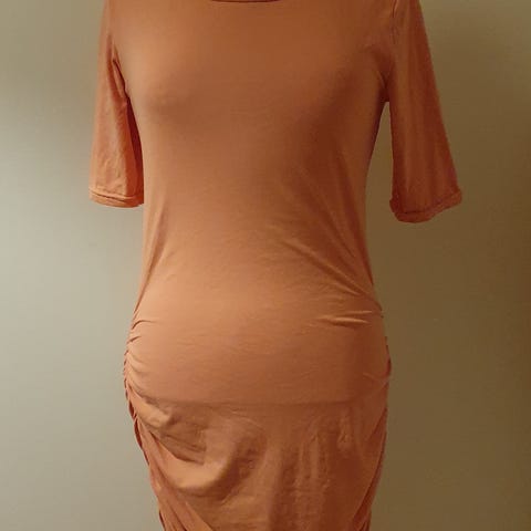 Sød kjole fra mærket Liberté I str. S/M. Brugt og ses ved at guld prikkerne er falmet flere steder og den har en plet, dog er den nok kommet af have ligget væk, ikke forsøgt fjernet, men er 99% sikker på at den kan fjernes med en våd klud. Den er I det lækreste bløde stof. Så behagelig!