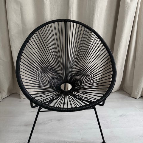 Andet, Spansk stol med stof, uden brugsspor, kun stået til pynt. Fra ikke rygerhjem. Sendes ikke.