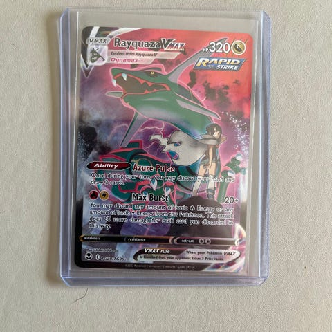 et mega eftertragtet kort fra evolving skies der er en rayquaza v full art