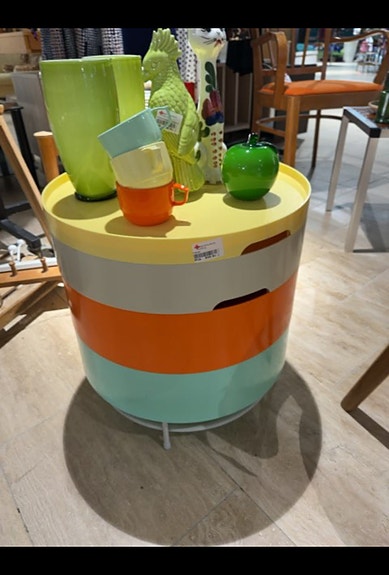 Et enkelt, klassisk møbel med buede ben og en lys træfinish. Tallet er dækket med keramiske tallerkener.,Afhentes i:,Røde Kors Kolding (621),Bemærk at mail, chat og beskeder ikke besvares, og varen skal købes på knappen "Gå til varen"