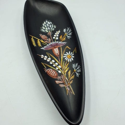 Vasen er sort med farverigt blomstermotiv. Den er lavet af keramik.,Afhentes i:,Røde Kors Roskilde (265),Bemærk at mail, chat og beskeder ikke besvares, og varen skal købes på knappen "Gå til varen"
