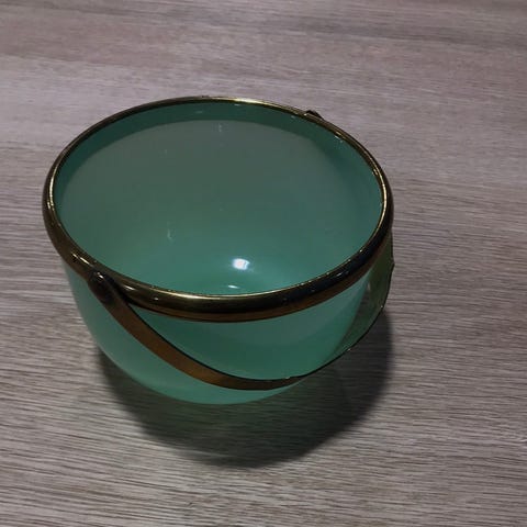 Yndig med guld og sart grøn detaljer Uden skår Diameter: 12 cm ,Afhentes i:,Røde Kors Egå (751),Bemærk at mail, chat og beskeder ikke besvares, og varen skal købes på knappen "Gå til varen"