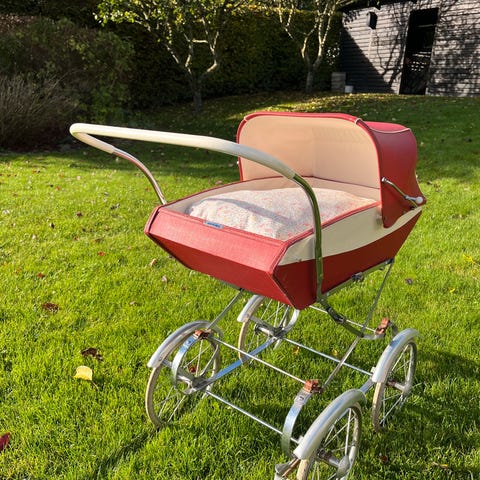 Gammel charmerende retro DUKKEVOGN som på billede, med indhold som på billede STYRHØJDE ca 71cm AFHENTNINGS PRIS