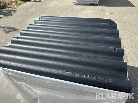 Materialet fremstår ubrugt. Emballagen på pallerne er slidt og delvist beskadiget efter lageropbevaring, mens de løse ruller er plomberede.