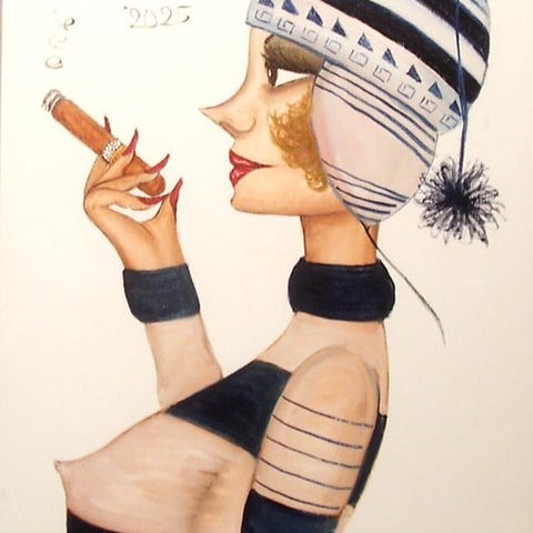 Original olie painting på 230 g Schoellershammer oliemalerpapir af den Berlin-baserede kunstner Alek Sander, med titlen Madame Cohiba im Packard Oldtimer mit Cohiba Zigarre, 50 × 40 cm, flerfarvet Naive kunst, håndsigneret, skabt i 2025, oprindelse Tyskland, i fremragende stand. Klik på den blå "gå til varen" knap, for at købe eller byde på denne vare. Den samlede pris vil blive vist inden du afgiver dit bud.