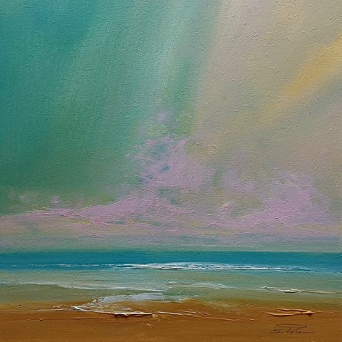 Akrylmålning på lærred af Enzo San Marco, titel Waves in other climes, signeret, originaludgave fra 2025, minimalistisk, symbolistisk landskab i orange, hvid, blå, grøn og guld, mål 100 × 80 cm (rullet lærred) med ægthedscertifikat fra Frankrig. Klik på den blå "gå til varen" knap, for at købe eller byde på denne vare. Den samlede pris vil blive vist inden du afgiver dit bud.