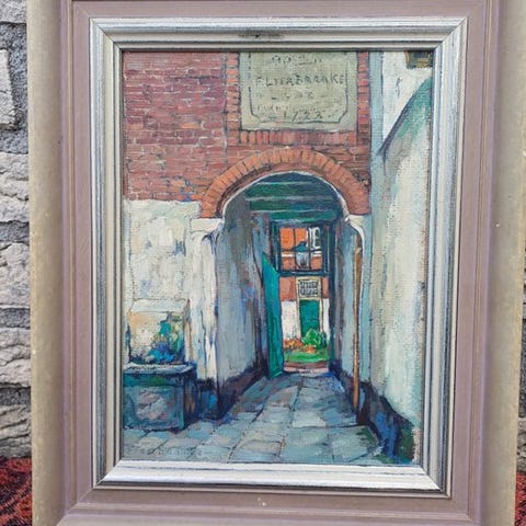 F. Wolter (XX) underskrevet originalt oliemaleri med titel Stadsgezicht Antwerpen, Groenplaats, impressionisme, flerfarvet, år 1990, mål 75 × 85 cm, afbildet bylandskab, solgt med ramme, i fremragende stand, oprindelsesland Nederland. Klik på den blå "gå til varen" knap, for at købe eller byde på denne vare. Den samlede pris vil blive vist inden du afgiver dit bud.