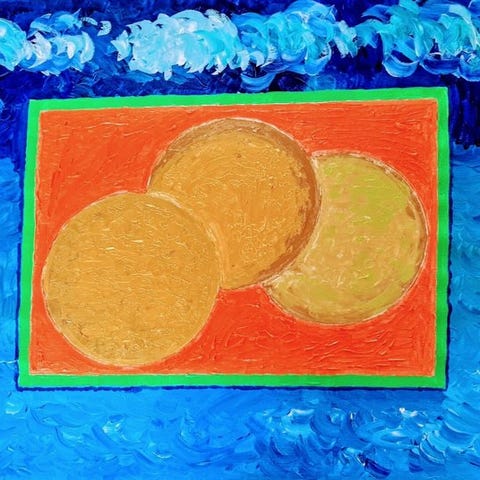 I dette værk fra begyndelsen af 2000'erne undersøger Antonio Sciacca grænsen mellem informel abstraktion og landskabsassociation. Lærredet er opdelt vandret i to dominerende felter, der vækker er mødet mellem himlen (eller den sandede jord) og havet. Værket beskriver ikke et fysisk sted, men gengiver dets farvemæssige og lysende essens gennem en ekstrem syntese.