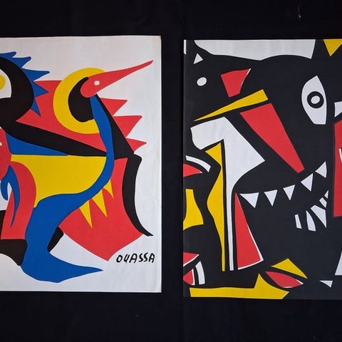 Frédéric Bruly-Bouabré, Figures, et Mixed Media-kunstværk på karton fra 1987, håndsigneret og i god stand, måler 25 x 17 cm, oprindelse Côte d’Ivoire, originaludgave. Klik på den blå "gå til varen" knap, for at købe eller byde på denne vare. Den samlede pris vil blive vist inden du afgiver dit bud.