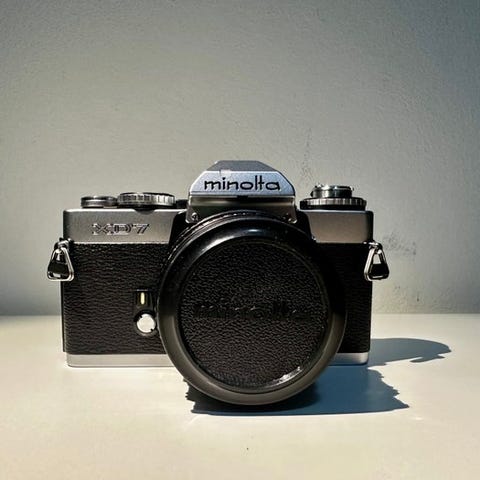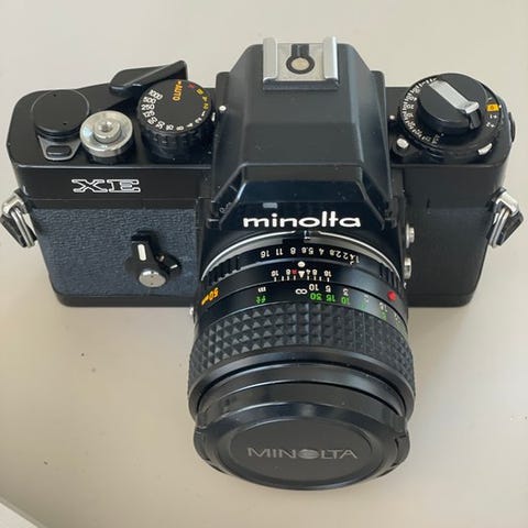 La Minolta X-300 fuldt sæt. Minolta X-300 er et klassisk 35 mm spejlreflekskamera, kendt for sin pålidelige manuelle kontrol og præcise måling, ideelt for fotograferingsentusiaster, der udforsker analog fotografering. Det robuste design og det intuitive betjeningssystem gør det til et fremragende valg for dem, der omfavner genoplivningen af retrofilm eller bæredygtige fotografipraksisser. Kompakt og let, det er perfekt til rejser eller kreative filmprojekter med et vintage touch. Filmformat: 35 mm.