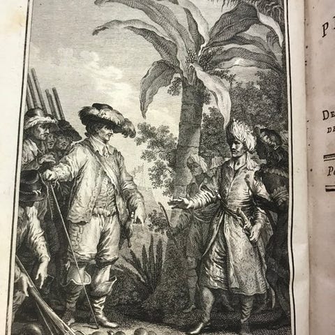 Denne omhyggeligt illustrerede udgave af denne berømte satire er trykt på vergé-papir og blev udgivet i 1726 med bemærkningen 'sidste udgave,... tilføjet med nye bemærkninger'.