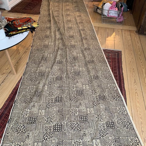 Kuba-textil fra Congo, Shoowa-Kuba oprindelse, dateret til 1980'erne–1990'erne, måler 330 x 60 cm, i god stand med aldersrelateret slid og pletter, Provenance: privat belgisk samling. Klik på den blå "gå til varen" knap, for at købe eller byde på denne vare. Den samlede pris vil blive vist inden du afgiver dit bud.