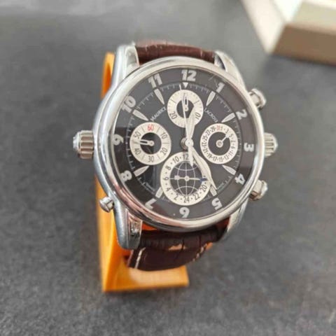 Band: original sort croco-læder Maurice Lacroix rem med klaplukning.