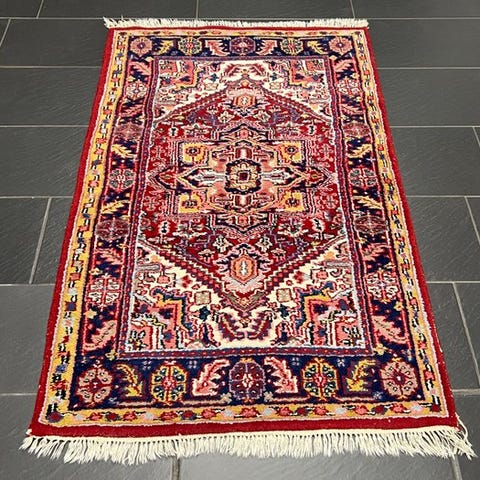 Der tilbydes et håndknyttet Heriz Orient-teppe fra Indien.