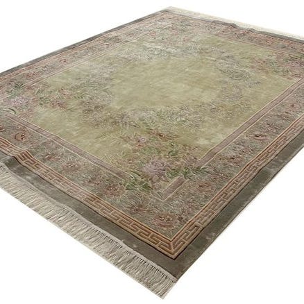 Et smukt håndknyttet originalt kinesisk silketæppe