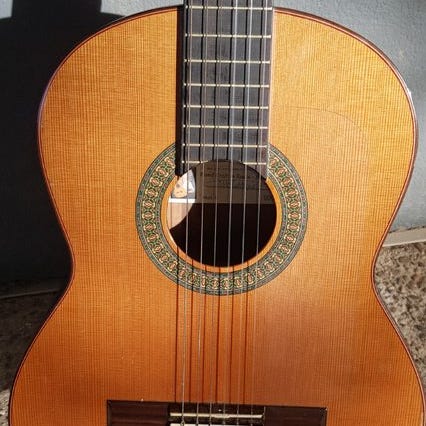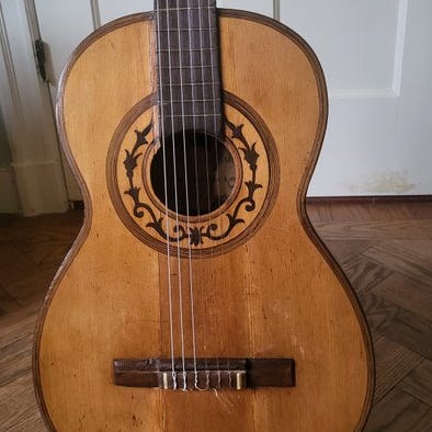 Underskrevet af Luthier (M Adalid?) se foto af mærkatet.