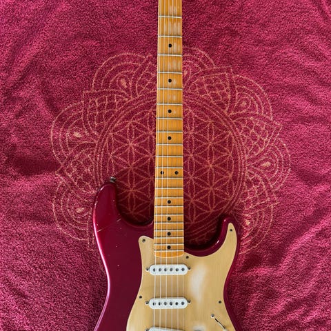 Fender Stratocaster Limited Edition 75. jubilæumsudgave, i næsten ny tilstand, med stift etui inkluderet, vægt 7 kg, testet og i funktion. Klik på den blå "gå til varen" knap, for at købe eller byde på denne vare. Den samlede pris vil blive vist inden du afgiver dit bud.