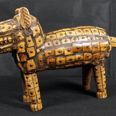 Et par afrikanske feticher fra Bamoun-folket lavet af buffelben fra Cameroun.