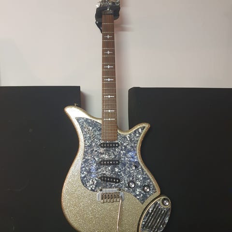 Meazzi Hollywood Sceptre, fremstillet i 1960 i Italien, træhåndteret semi‑akustisk guitar i meget god stand. Klik på den blå "gå til varen" knap, for at købe eller byde på denne vare. Den samlede pris vil blive vist inden du afgiver dit bud.