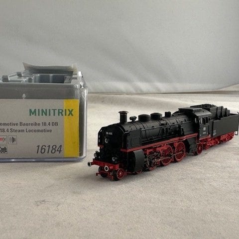 Minitrix N-skala elektrisk lokomotiv Re 4/4 af Schweizerische Bundesbahnen (SBB/FFS), katalognummer 16882, med digitalt lyddekoder, NEM-stik og DC-strøm, analog og digital styring, i næsten ny stand i originalemballagen. Klik på den blå "gå til varen" knap, for at købe eller byde på denne vare. Den samlede pris vil blive vist inden du afgiver dit bud.