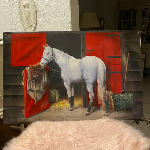 Ja, også heste har hastighedsgrænser - og dette skilt er for at sikre, at alle ved det! Færdig i et smukt klassisk sort-hvidt design, kommer denne vægplakette med budskabet: "Hastighedsgrænse for heste Ved gang, motoriserede køretøjer 10 miles per hour". Med en stilfuld kant og hævet skrift er dette en enkel, charmerende og subtil måde at minde både rytterheste og bilister om deres hastighed på en gård, landevej, gårdsplads eller avlsgård. Fire forborrede huller gør det nemt at hænge på en væg, et hegn, en port eller en søjle.