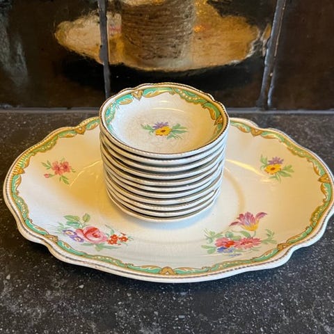 Dette engelske stel er en juvel fra den prestigefyldte porcelænsfabrik Johnson Bros, kendt for sin