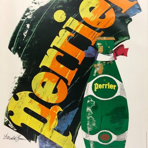Reklameplakat trykt i offset lithografi for det berømte franske mineralvand af mærket Perrier.