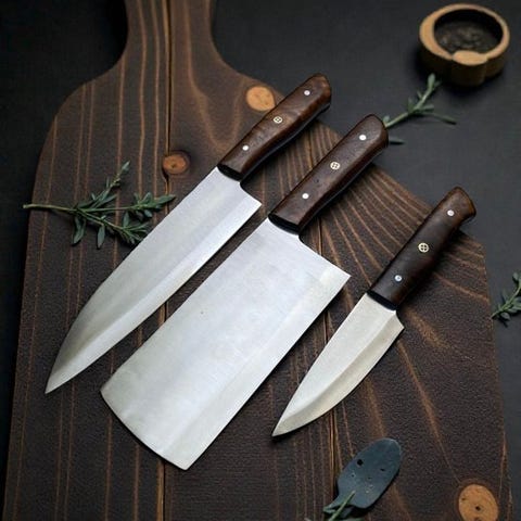Set of FOUR, Hand-Forged with Old & dual polish Steel, Japanese Style Knives ...