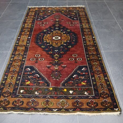 Tyrkisk Anatolisk Yahyahli tæppe, 188 × 117 cm, 100% uld på uld, flerfarvet, fremstillet i midten af det 20. århundrede, professionelt renset, i generelt god stand. Klik på den blå "gå til varen" knap, for at købe eller byde på denne vare. Den samlede pris vil blive vist inden du afgiver dit bud.