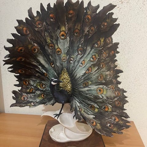 Imponerende porcelænskulptur af en ugle, udført af den italienske skulptør Giuseppe Armani, en ikonisk skikkelse i florentinske værker fra slutningen af det 20. århundrede.