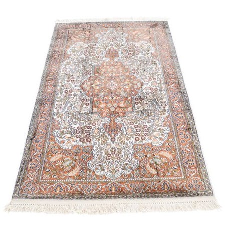 Oprindelse Indien, silke på bomuld, beige 305 × 80 cm, vægt 10 kg, 21. århundrede, i god stand med alders- og brugsspor. Klik på den blå "gå til varen" knap, for at købe eller byde på denne vare. Den samlede pris vil blive vist inden du afgiver dit bud.