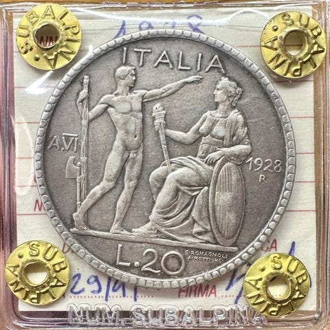 Italien, Kongerig Vittorio Emanuele III. 20 Lire 1923 "Fascetto"